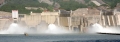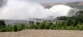 本次黄河调水调沙流速为4500立方米/每秒左右,巍巍壮观的黄河小浪底大坝前,喷涌而出的高压水流形成巨瀑,如“黄龙”腾空掀起排排巨浪,壮观的人工大潮,云蒸霞蔚,气势磅礴,观景台上人声欢歌,飞瀑周围鹤鸟飞舞,这一罕见而独具特色的人间奇观,真实地绘就了“黄河之水天上来”的情景。